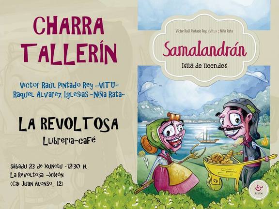 "Vitu" y "Niña rata" estarán acompañándonos a partir de las 12:30, presentando el cuento ilustrado "Samalandrán: Islla de Lleendes" (Ediciones Trabe). Pero no sólo presentarán el so llibru, sino que habrá un tallerín pa los y las más peques ;)