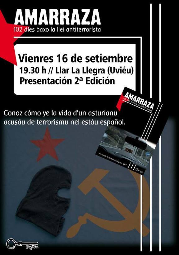 Esti vienres 16 de setiembre a les 19:30 hores La Llegra acueye la presentación per parte del coleutivu Sofitu de la 2ª edición del llibru "Amarraza. 102 díes baxo la llei antiterrorista".