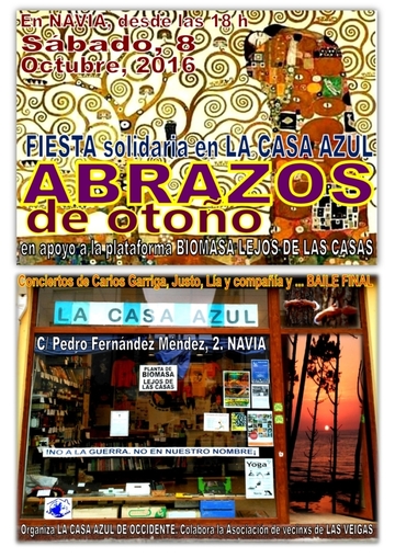 Saludos: Para este sábado 8 de octubre preparamos desde La Casa Azul la fiesta de otoño Abrazos. Como en Abrazos anteriores habrá música, comida, bebida y mucha felicidad y alegría para compartir entre todxs. Entre otros, actuarán: Carlos Garriga, Justo, Lia y más. Para final, un gran baile.