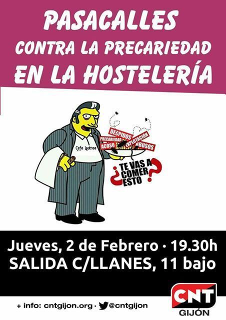 Ni un abuso más en la hostelería gijonesa. El jueves 2, todos a la calle!
