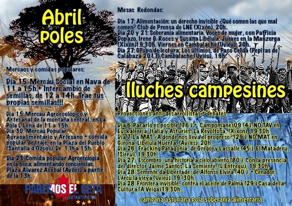 El viernes 21 de abril a las 20h. Mesa redonda: Soberanía Alimentaria. Patricia Dopazo, Susana Ruiz Franco e Irene García Roces. [Jornadas Luchas campesinas]