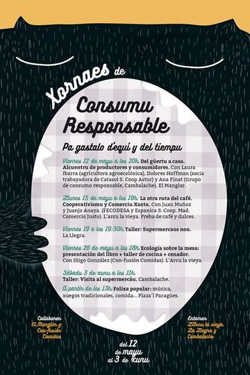 Los espacios uvieinos L'Arcu la Vieya, Espaciu La Llegra y "Cambalache" entamen nel mes de mayu unes xornaes que col títulu "Xornaes de consumu responsable: pa gastalo d'equí y del tiempu" van tar analizando nel mes de mayu y xunu estremaes temátiques no tocante a los grupos de consumu, la producción agroecolóxica, el comerciu xustu o el funcionamientu de los supermercaos frente a les ventaxes d'otres formes de cercanía. Amás, les actividaes van rematar con una folixa popular na Plaza'l Paragües d'Uviéu.