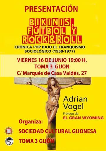Presentación del libro 'Bikinis, fútbol y rock &roll' a coargo de su autor, Adrián Vogel. El viernes 16 de junio en TOMA 3 GIJÓN (Marqués de Casa Valdés, 27).