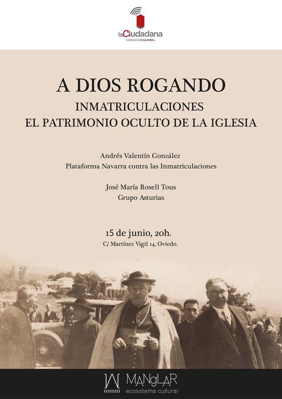 A Dios rogando: inmatriculaciones, el patrimonio oculto de la Iglesia. Con la participación de Andrés Valentín González, de la Plataforma Navarra contra las inmatriculaciones y José Rosell Tous, del Grupo de Inmatriculaciones de Asturies.