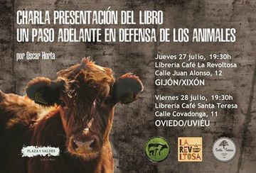 El próximo jueves 27 de Julio, Oscar Horta estará en La Revoltosa, libros y café para presentar su libro "Un paso adelante en defensa de los animales"