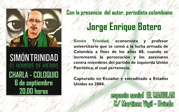 Hablará de Simón Trinidad, en el marco de la campaña para lograr su Libertad , y sobre el que escribió muchas historias, entre ellas el libro El Hombre de Hierro.