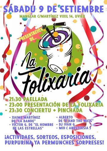 Por ello entamemos una CENA🥘+ 🎉 FOLIXA🎉ESTI SÁBADU 9 de setiembre nel MANGLAR con dellos artistes invitaos🎤 y DJs🎧!