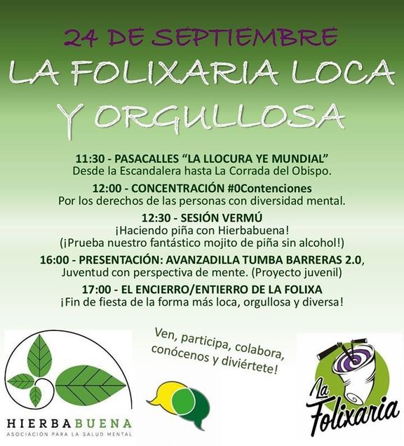 Organizan:Hierbabuena Salud Mental ,Avanzadilla TUMBA Barreras. Juventud mas allá del sufrimiento mental y La Folixaria