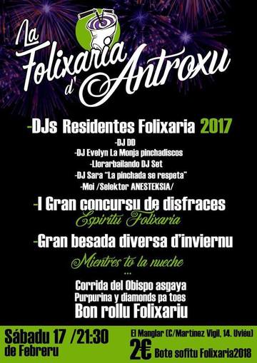 La mejor folixa d'antroxu que vais a poder vivir en Uviéu el día 17 de febrero a partir de las 9 y media de la noche en el manglar (C/martínez Vigil, 14)