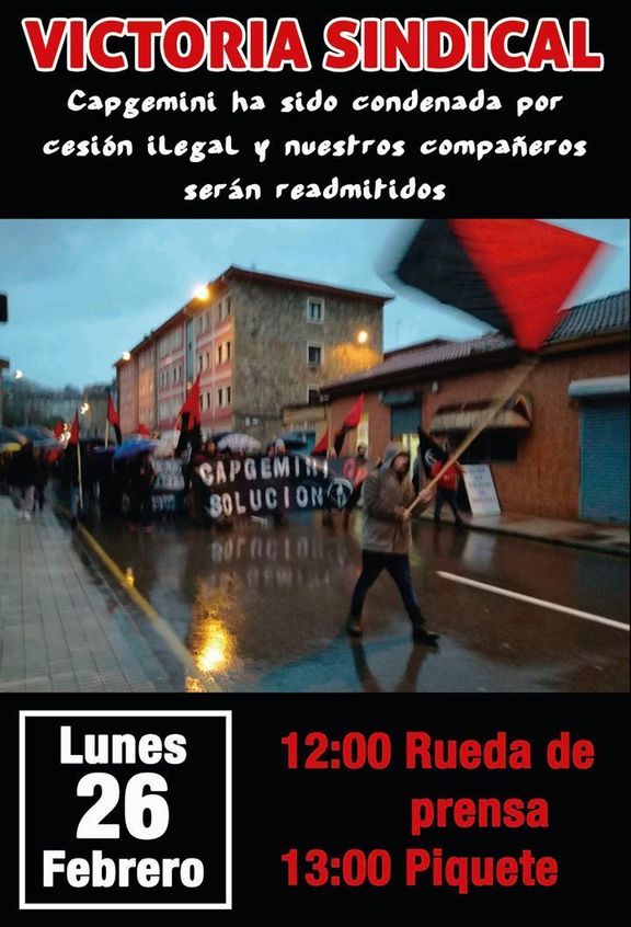 GANAMOS EL CONFLICTO CONTRA CAPGEMINI POR CESIÓN ILEGAL, LOS COMPAÑEROS SERÁN READMITIDOS Y QUEDARÁN FIJOS EN LA EMPRESA