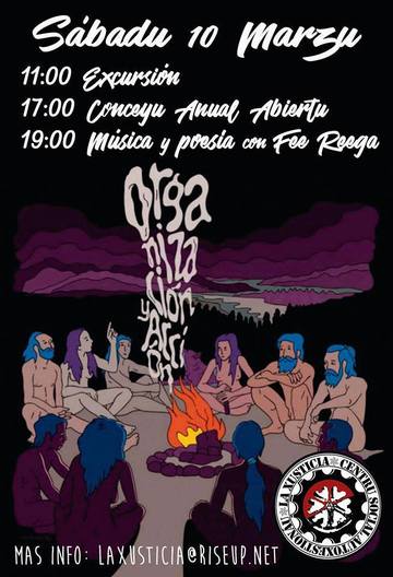 El Sábadu 10 de Marzu yel nuesu conceyu anual. Queremos que sía un día pa cavilar so lo fecho y pa marcanos les llínies de cara al futuru. Tamién pa confraternizar y pa que aquellos qu'entá nun nos conocéis o conocéisnos pero nun vos atrevistis a dar el pasu suméisvos a la llucha que dende'l CSA La Xusticia llevamos alantre.