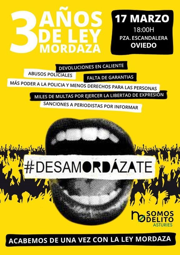 El sábado 17 de marzo tenemos que vernos en las calles para gritar alto y claro que sus mordazas no nos dan miedo, ni nos paralizan ni nos callan. ACABemos con sus MORDAZAS.