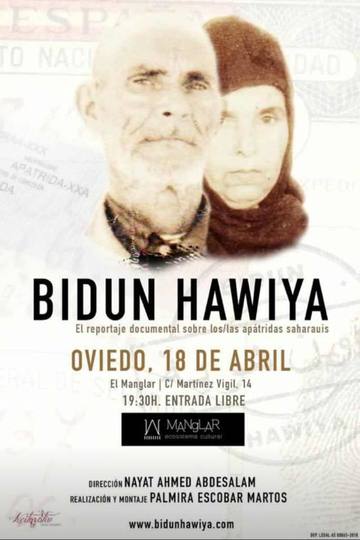 Bidun Hawiya es un reportaje documental que pretende hacer reflexionar a la sociedad sobre la pérdida de identidad del pueblo saharaui al verse obligado a obtener un documento para gozar de unos derechos esenciales.