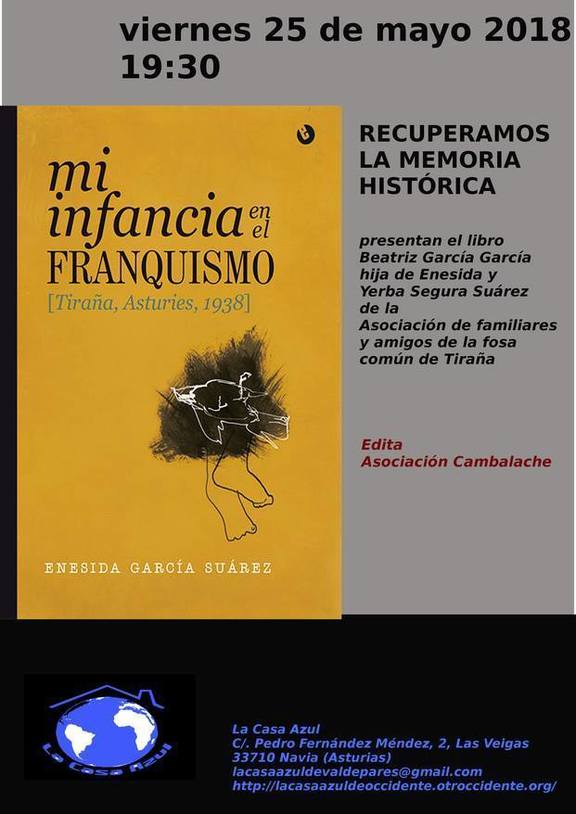 Presentamos el libro de Enesida García Suárez, editado por Cambalache, con Beatriz García García, hija de Enesida, y Yerba García Suárez, ambas de la Asociación de familiares y amigos de la fosa común de Tiraña.