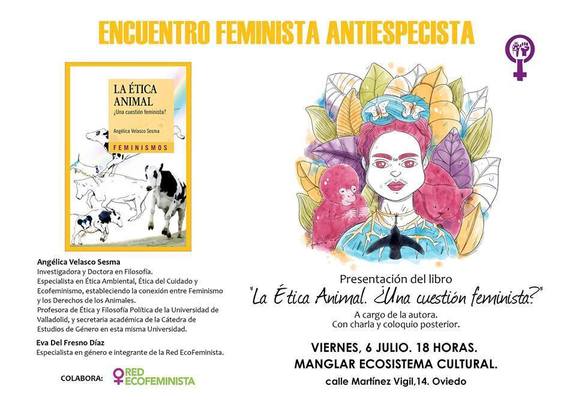 Charla/coloquio. Presentación del libro "La ética animal. ¿Una cuestión feminista? ", a cargo de su autora. Con Angélica Velasco Sesma, investigadora y Doctor en Filosofía y Eva del Fresno Díaz, especialista en género e integrante de la Red Ecofeminista. Colabora: RED ECOFEMINISTA.
