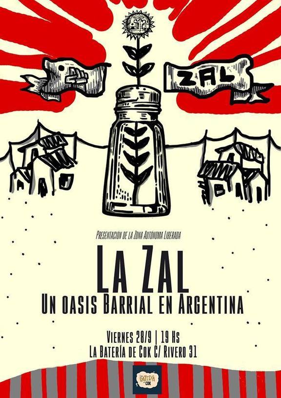 El viernes 28 se estará presentando el proyecto de la Zona Autónoma Liberada en el bar cultural La Batería de Cok de Avilés, si querés saber de qué va esto y porqué es tan importante que sobreviva frente a la situación política y social de Argentina, no te lo pierdas.