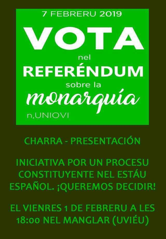 El viernes 1 a las 18:00h presentamos en el Manglar (c/ Martínez Vigil, 14) la iniciativa del referéndum sobre la Monarquía. ¿Por qué un referéndum, qué tipo de referéndum...? No te lo pierdas!
