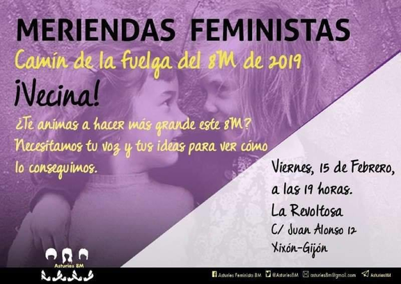 El viernes 15 de febrero tendremos una merienda feminista a la que estáis invitadas todas las que queráis participar.