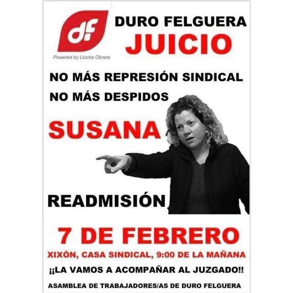 Para acompañar a Susana en este dìa y para seguir denunciando la injusticia de este despido, estaremos a las nueve de la mañana delante de la Casa Sindical para acudir desde ahì a los juzgados.