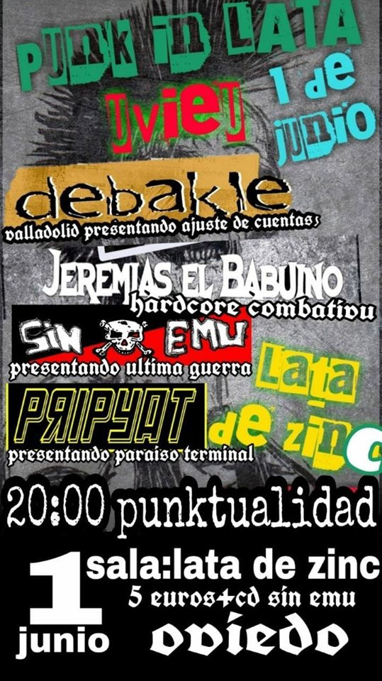 Concierto con debakle desde Valladolid(presentando su nuevo disco ajuste de cuentas) en compañia de los grupos asturianos:jeremias el babuino,sin emu y pripyat