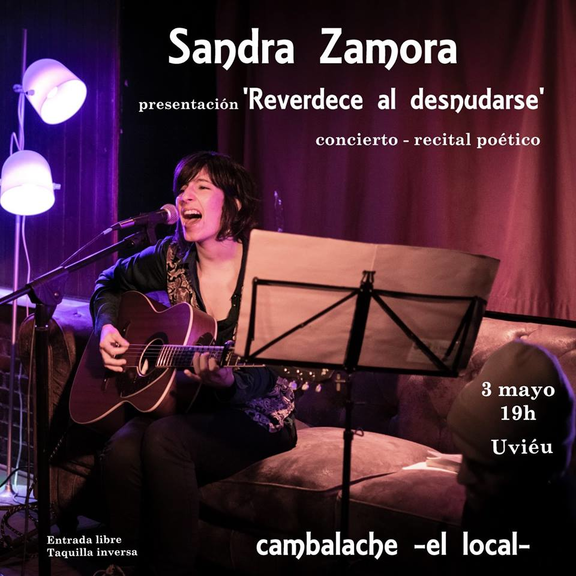 El viernes 3 de mayo a las 19h Concierto-recital poético: Reverdece al desnudarse, con Sandra Zamora. Entrada libre. Taquilla inversa.