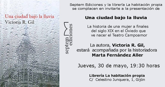 Presentación de la novela de Victoria R. Gil, una ciudad bajo la lluvia.
