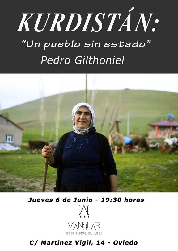 ¿Sabías que el pueblo Kurdo actual está emparentado con el Medo? ¿Y que es el pueblo más grande del mundo sin estado? ¿Y cuál es la diferencia entre defenderse y practicar el terrorismo? El jueves 6 de junio a las 19:30 en el Manglar (Oviedo) Pedro Gilthoniel nos compartirá, desde una perspectiva histórica, antropológica y socio-política, la problemática y resistencia del pueblo kurdo, con especial atención al trabajo y organización de sus mujeres. Hablaremos de la fugaz República Kurda en Rojhalat en los años 40, de la lucha armada e ideológica en Bakur desde los 70, de la operación Al-Anfal para el exterminio del pueblo kurdo en Bashur en los 80 y de su actual proyecto de Confederalismo Democrático, Agroecología y Jineología en Rojava. Religión, edudación y geo-política internacional se entremezclan en una de las zonas más rica en recursos de Oriente Medio.