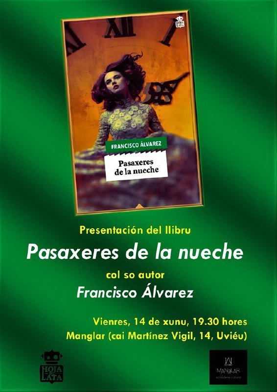 Pasaxeres de la nueche recueye la meyor narrativa curtia de Francisco Álvarez, ganador de los premios Xosefa Xovellanos y de la Crítica d'Asturies cola so primera novela, Lluvia d'agostu, quiciabes el debú más sorprendente na lliteratura asturiana de los últimos años.