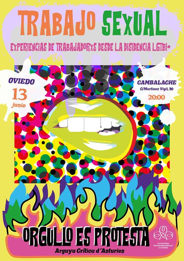 El xueves 13 de xunu a les 20h Charra-debate: trabayu sexual. Mesa d'experiencies con trabayadores sexuales dende la disidencia sexual y de xéneru + proyeición del curtiometraxe de Tránsitos (2018) de Linda Porn. Con Keny, Linda Porn y Xavi Tallón.