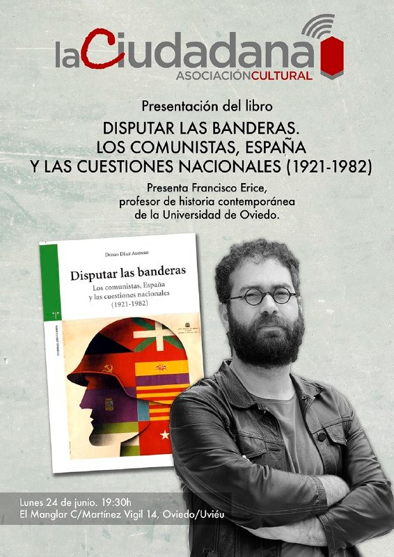 "Disputar las banderas. Los comunistas, España y las cuestiones nacionales (1921-1982)". No puede ser más pertinente y actual el debate sobre la relación de la izquierda española con los nacionalismos y la propia idea de España, cuestiones estas que desarrolla en su ensayo el joven historiador Diego Díaz. El coloquio será introducido por Francisco Erice, profesor de Historia Contemporánea en la Universidad de Oviedo.