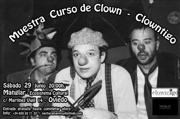 Muestra de fin de curso de clown. El sábado 29 a las 20:00 en Oviedo, en el Manglar. Entrada gratuita hasta completar aforo.