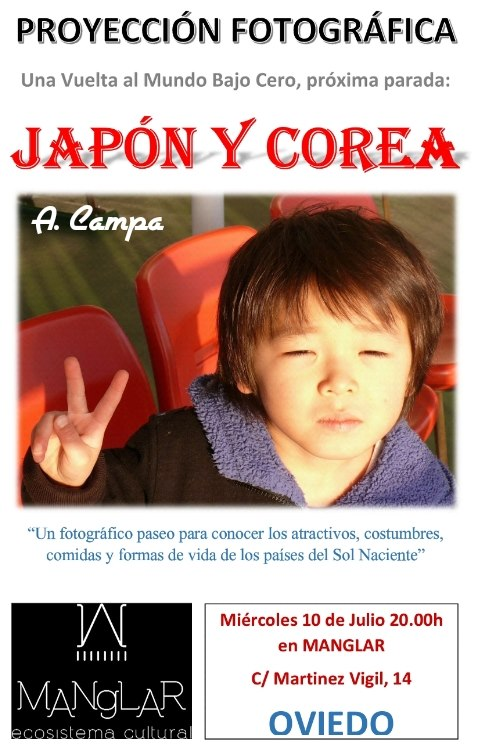 Desde la sala de proyecciones de nuestra ovetense sala Manglar, una nueva vuelta al mundo, esta vez viajando a las curiosas Japón y Corea de la mano de Alberto Campa.