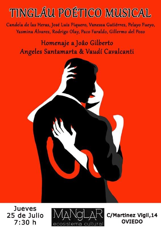 Una palabra, a veces, puede servir más que mil imágenes. Si es dicha en el momento preciso, construye mundos, crea, produce magia. Música y palabra irán de la mano este jueves 25 de julio, a partir de las 19:30 horas, en El Manglar. El verano hace posible la unión (y esperemos que comunión) de una difícilmente mejorable selección de las mejores voces poéticas asturianas, algunas de ellas en la diáspora. Hasta ocho voces contagiarán su cosmovisión al público ovetense. Y, para concluir la velada, un sentido homenaje a un grande de la música brasileña, Joao Gilberto, padre de la bossa nova, recientemente fallecido, a cargo de la saxofonista Ángeles Santamarta (Dulce) y de Vaudi Cavalcanti (guitarra y voz), enorme músico brasileño afincado en Asturias. Esta puede ser una gran velada en El Manglar. Sólo faltas tú.