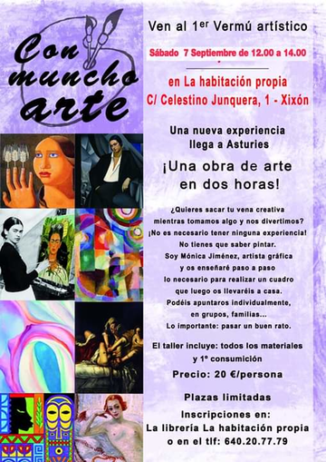 No necesitáis experiencia ni saber pintar, os iré enseñando paso a paso lo necesario para hacer un cuadro. En cada quedada nos acercaremos a la vida y al estilo de una artista y realizaremos un cuadro que luego os llevaréis a casa.