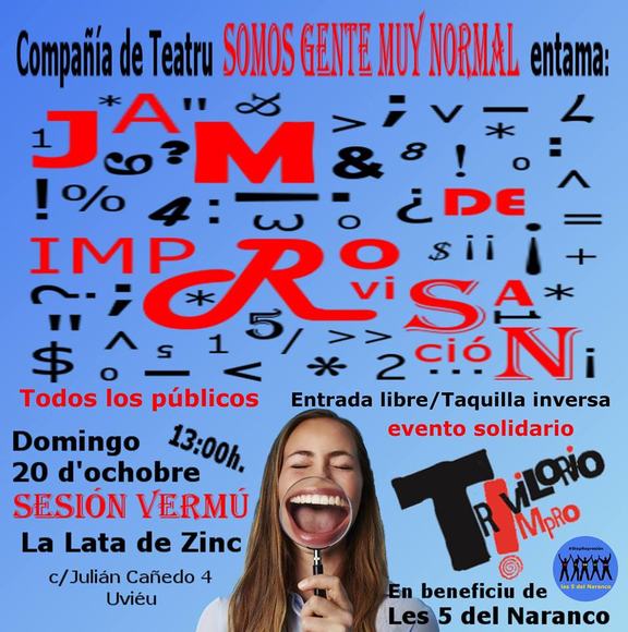De la mano de Trivilorio y en clave de humor, llega la compañía de teatro "Somos Gente Muy Normal" con una jam solidaria de improvisación de teatro en beneficio de la Caja de Resistencia de Las 5 del Naranco.