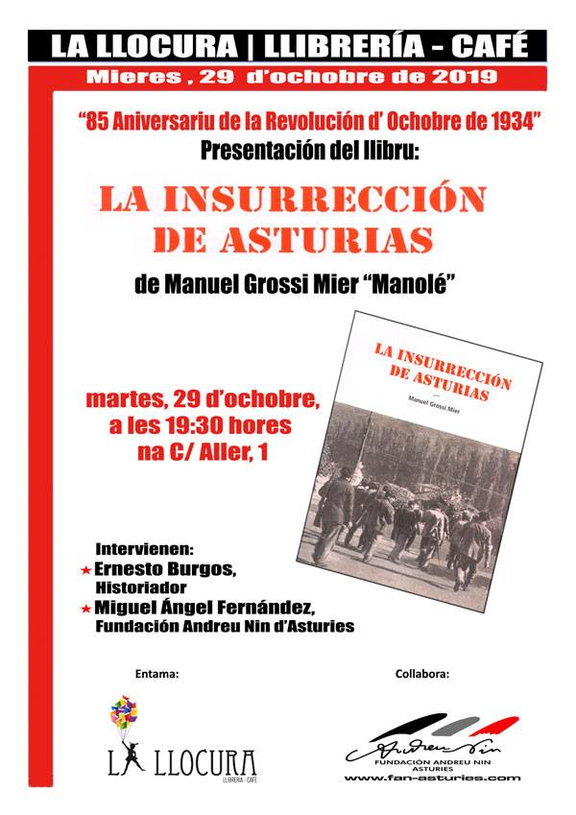 Miguel Ángel Fernández, de la Fundación Andreu Nin Asturies - FAN y el historiador Ernesto Burgos Fernández nos acercan a la figura de Manuel Grossi, "Manolé", a través del libro "La insurrección en Asturias", escrito durante su cautiverio en la Casa del Pueblo de Mieres después de ser condenado a muerte por su destacada participación en la Revolución de Octubre del 34.