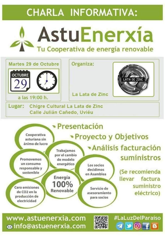 Este martes estaremos organizando una charla con nuestras socias de La Lata de Zinc . Os esperamos en #Uviéu , tráete tu factura y consúltanos todas tus dudas.