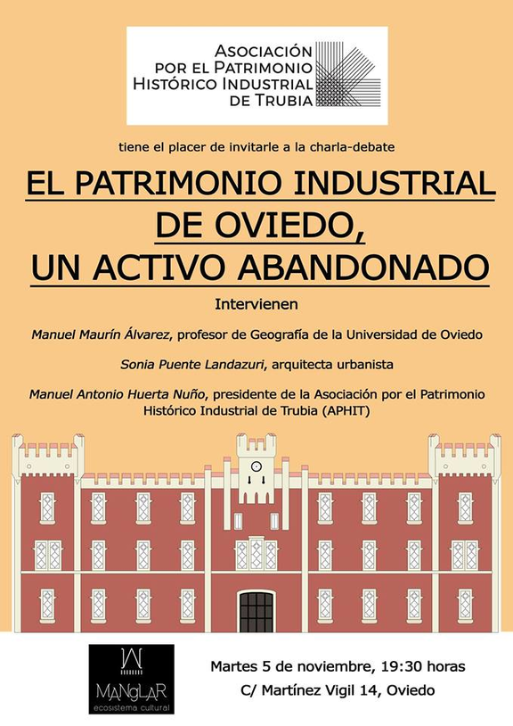Una charla con muy cualificados ponentes que se referirán a la importancia histórica de Oviedo como ciudad industrial y ferroviaria en el contexto de la industrialización del Área Central de Asturias, a la importancia del patrimonio que ha llegado a nuestros días y a su estado de abandono, desprotección y desuso.