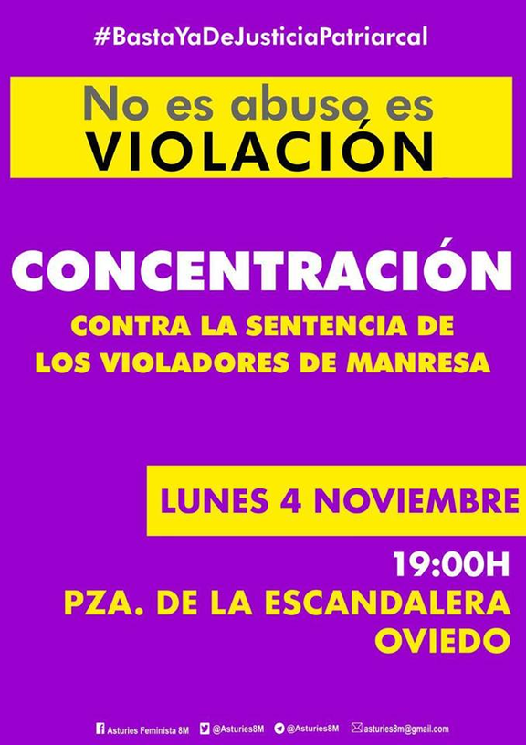 📢 Concentración contra la sentencia de los violadores de Manresa. Hace año y medio se prometió una propuesta en semanas … seguimos esperando… El sistema nos viola. #NoEsAbusoEsViolación