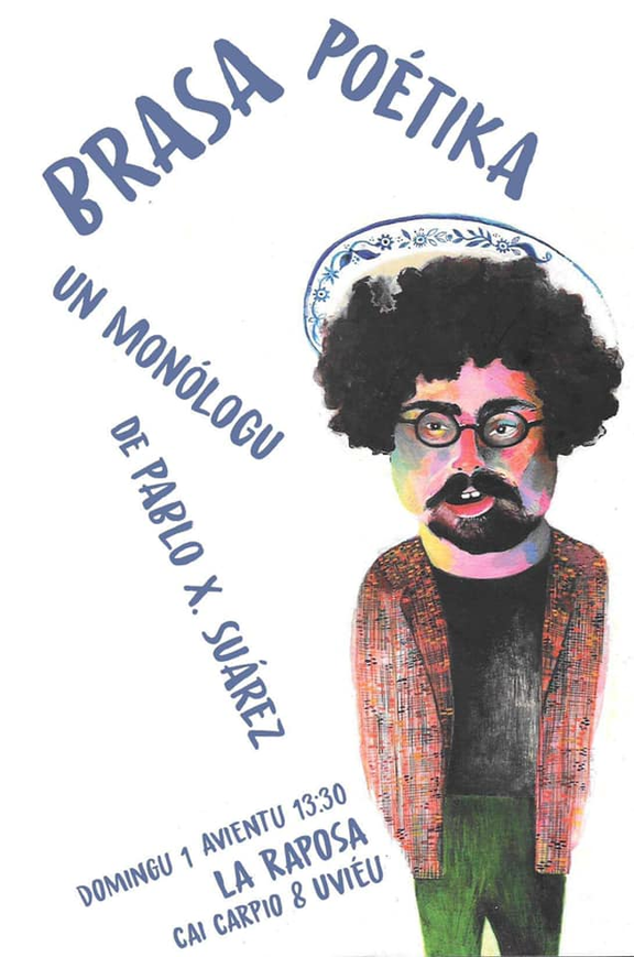 ¡Si la poesía vos da la vara d'esta vais tener brasa de la buena! Pablo X. Suárez, alma de la Timba Poétika y del festival underground Sacavera Sound , pasará esti domingu pela Raposa a presentanos, per primer vez n'Uviéu, el monólogu 'Brasa Poétika'. Psicodelia, costumismu y ironía atlántica nuna pieza híbrida onde recuerre, cortexando colos patrones de la stand up comedy, los finxos de la so obra al calor de l'autobiografía.