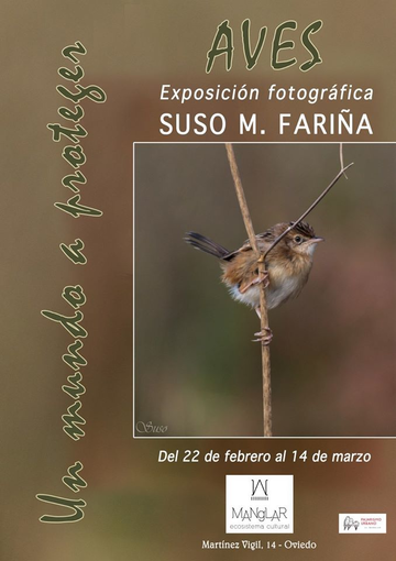 Inauguramos la exposición "Aves: un mundo a proteger" del fotógrafo Suso F. Fariña. Con esta exposición abrimos el trabajo que desarrollaremos desde el Manglar para hacer acciones que redunden en beneficio de nuestra flora y fauna, concretamente la aviar y que cristalizará el próximo día 7 de marzo con la presentación del grupo "Pajarismo Urbano", que se inspira en la campaña de la Sociedad Española de Ornitología "Aves de barrio". Suso nos cuenta que "Desde niño he sido un amante de la naturaleza y concretamente un gran observador del mundo de las aves y del cielo nocturno. Eso fue una de las cosas que me acercó a la fotografía de naturaleza, aunque reconozco que en mis años mozos... (sin demasiado éxito) debido a la precariedad de los equipos de fotografía existentes por entonces.