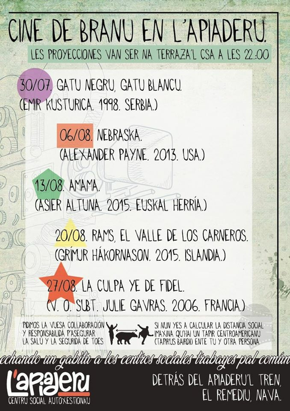 La terraza de L'Apiaderu lo mesmo val d'escenariu musical que de sala de cine. Asina ye, que proponemos cinco sesiones de cine pa echar dellos atapeceres a la fresca.