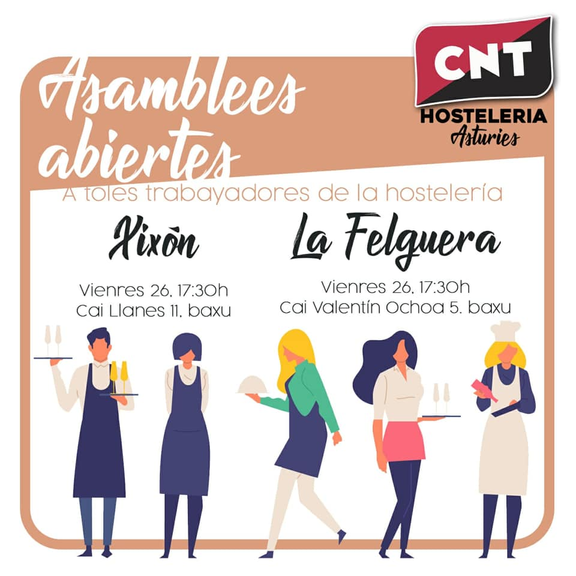 Si trabayes na hostelería interésate. ASAMBLEA ABIERTA de trabayadores d'hostelería n'Asturies.