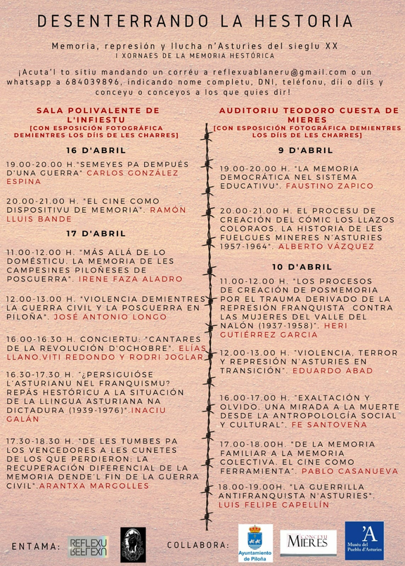 Dende l'asociación Cultural Les Ablanes de Piloña y l'asociación Cultural Reflexude Mieres entamamos unes xornaes perinteresantes sobre la represión política n'Asturies del S. XX.