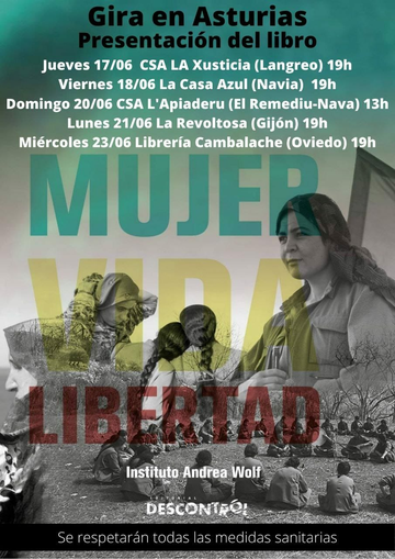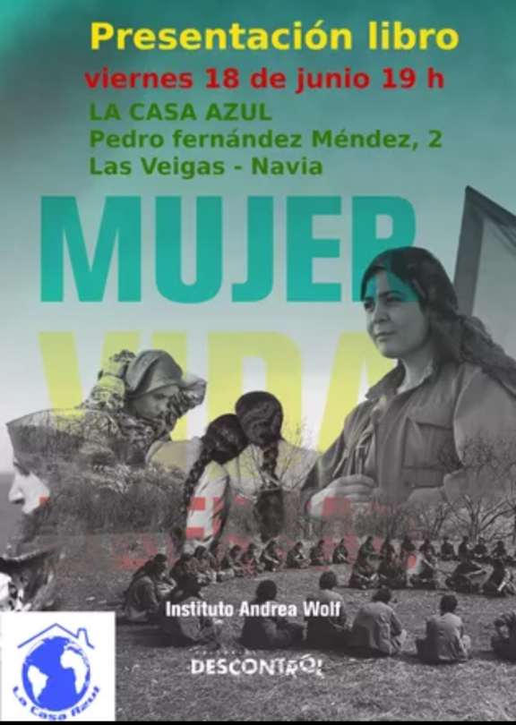 Para conocer más en profundidad sus prácticas, problemáticas, avances y esa ciencia de la mujer que las kurdas han definido como Jineolojî, te invitamos este viernes 18 de junio a las 7 de la tarde a la presentación del libro "Mujer, Vida, Libertad. Desde el corazón del Movimiento de las Mujeres Libres de Kurdistán", escrito por el Instituto Andrea Wolf de Rojava y publicado en 2020 por la editorial Descontrol, en nuestro local de La Casa Azul, calle Pedro Fernández Méndez 2, en Las Veigas (Navia), donde contaremos con la presencia de una de sus autoras.