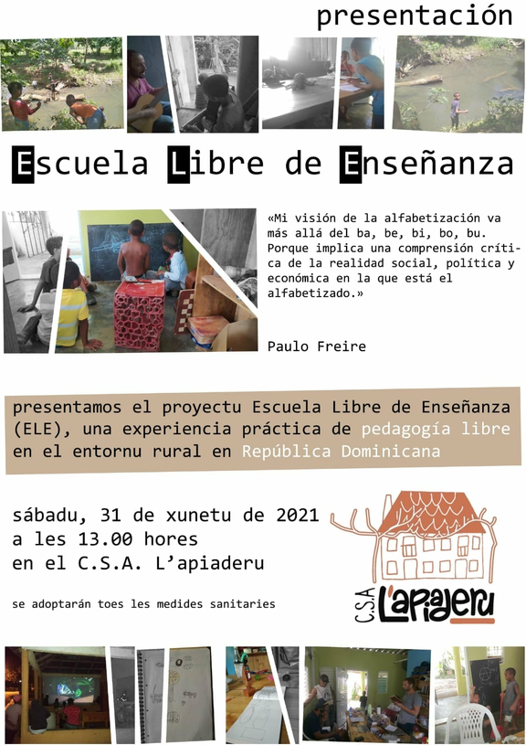 El sábadu, a les 13:00 hores, presentación d'un proyectu d'Escuela Llibre d'Enseñanza en República Dominicana.