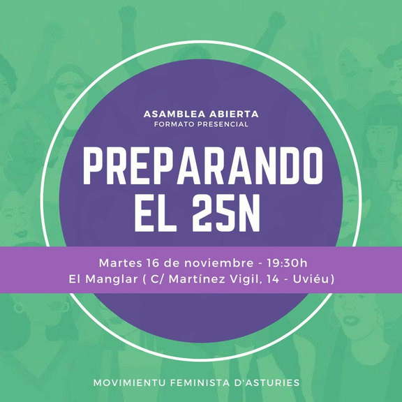 El martes 16 de noviembre asamblea presencial en El Manglar, Oviedo para preparar este #25N Te esperamos!
