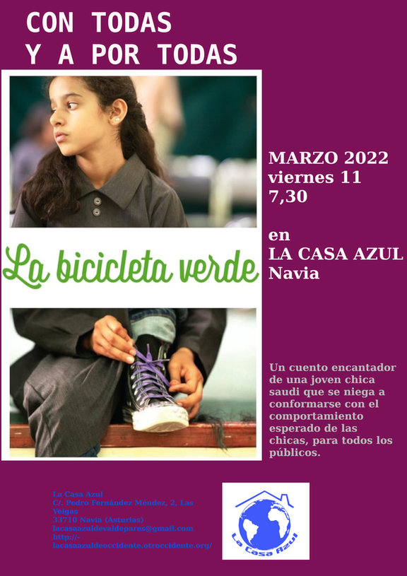 Nosotras, desde La Casa Azul celebramos este día, 8M, a las 19:30 de la tarde con la proyección en nuestro local de la película del 2012 "La bicicleta verde" de Haaifa Al-Mansour, primera película dirigida por una mujer en Arabia saudí.