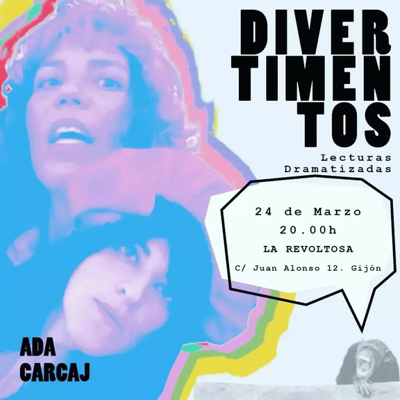El Día Mundial del Teatro se aproxima y Ada Carcaj estará calentando motores en La Revoltosa, el jueves 24 de marzo, con tres de sus Divertimentos, lecturas dramatizadas de textos teatrales originales de humor absurdo.