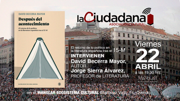 La crisis económica y, especialmente, el acontecimiento del 15-M abrieron fisuras en el inconsciente ideológico. Las contradicciones que la ideología se encargaba de armonizar y cohesionar de pronto empezaron a tensarse. Tras la imagen del yo-libre empezó a asomar, cada vez con más urgencia, el rostro real del yo-explotado. La ideología se iba resquebrajando y por entre las grietas se anunciaba la posibilidad de construir un mundo alternativo, otras formas de relacionarse, de organizarse, de vivir, de pensar. Y, por supuesto, una literatura otra que, a diferencia de la que había hegemonizado el campo español hasta la fecha, no desplazara las contradicciones, sino que las enunciara como preámbulo de su estallido, del que pudiera emerger un mundo libre y sin explotación. Si el discurso literario hegemónico, «la novela de la no-ideología», presenta que todo conflicto encuentra su causa en el interior del sujeto y, en consecuencia, es el yo quien debe transformarse para adaptarse o sobreponerse a la situación, tras el acontecimiento surge una nueva narrativa que invierte este discurso, se politiza, y narra que lo que nos pasa debe encontrar su explicación fuera del sujeto, esto es, en la realidad histórica y social, en el capitalismo, en las relaciones sociales y de producción en las que, como sujetos, estamos insertados, y que nos constituye. Después del acontecimiento estudia, a partir de un amplio corpus de obras literarias, el retorno de lo político que ha experimentado la literatura española tras el 15-M.